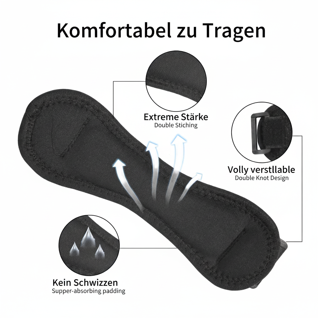 Die PatellaStrap entlastet gezielt die Patellasehne, indem sie sanften Druck ausĂŒbt und die Belastung im Kniegelenk gleichmĂ€Ăig verteilt. Das kann Beschwerden bei Ăberlastung, Patellaspitzensyndrom oder leichten GelenkentzĂŒndungen deutlich verringern.
